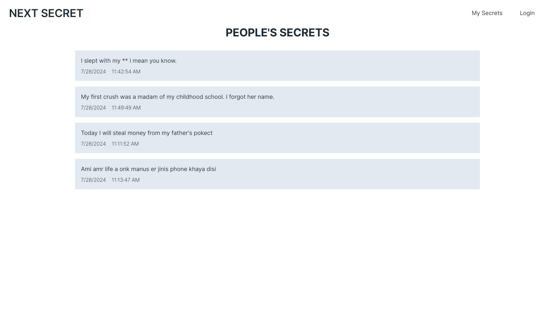 In today's digital age, the desire to share thoughts and experiences anonymously has grown significantly. Whether it's to express oneself freely, seek advice, or simply share intriguing stories, the need for a secure and anonymous platform is essential. Introducing our latest project, a web app designed to let people share their top secrets with the world without revealing their identity.